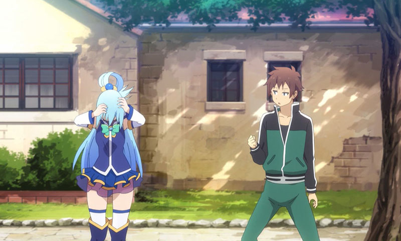 Вместо ожидаемой гибели, Кадзума пережил нечто невероятное — он оказался в совершенно ином мире, полном магии и мистических существ. Этот волшебный мир был домом для фей, эльфов и гоблинов. Почувствовав себя растерянным и одиноким в этом новом окружении, Кадзума вскоре встретил девушку по имени Аква. Она рассказала ему, что его появление здесь не случайно и что этот мир находится на грани гибели из-за жестокого и безжалостного Короля демонов. Только Сато Кадзума мог спасти обитателей этого волшебного мира.